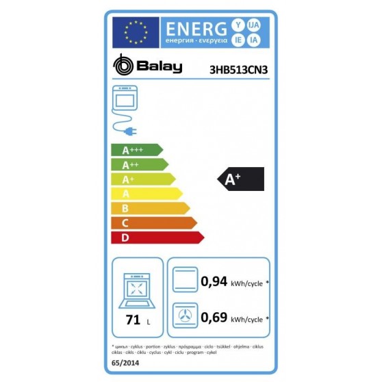 Horno con capacidad de 71 litros que destaca por su eficiencia energética A+, funciones avanzadas como convección y autolimpieza hidrolítica, y un diseño en cristal negro. Su sistema de calefacción superior e inferior junto al aire caliente 3D garantiza resultados perfectos en cada cocción.