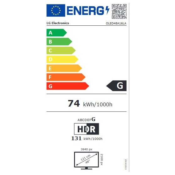 Televisor OLED de 48 pulgadas, UHD 4K, eficiencia energética G, Smart TV y Wifi integrado.