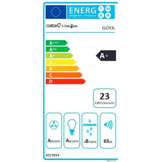 Campana CATA GOYA PRO 90BK. 7 Niveles de extracción, Iluminación LED, cristal negro, 825 m3/h, 64 dB,eficiencia energética A+++.