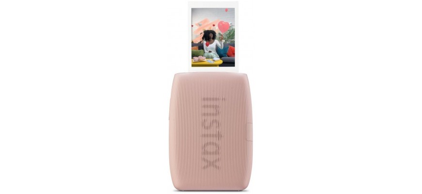 Esta cámara instantánea ofrece 10 efectos de lente y película, un espejo para selfies junto a la lente, y viene con una correa y cable USB para su carga.
