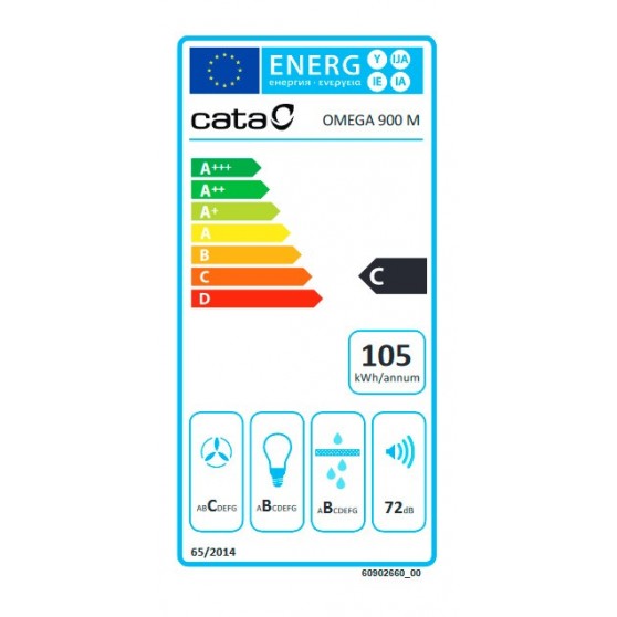 Campana Decorativa de 90 cm de ancho y color negro. Ofrece un sistema de ventilación de un nivel sonoro máximo de 72 dB y una capacidad de extraccin máxima de 645 m³/h.
