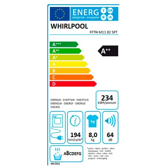 Secadora Libre Instalaciónde 59,5 cm de ancho; capacidad de carga de 8 kg; bomba de calor y eficiencia energética A++.