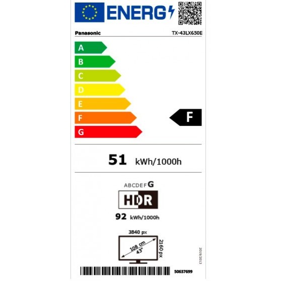 Televisor LED de 43 pulgadas, eficiencia energética F, S.O. Android, Smart TV y Wifi integrado.