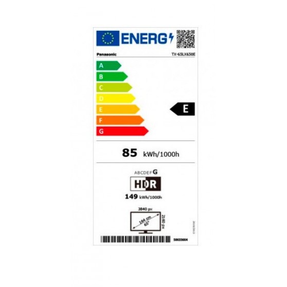 Televisor LED de 65 pulgadas, eficiencia energética E, S.O. Android, Smart TV y Wifi integrado.