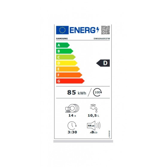 Lavavajillas Libre Instalación con eficiencia energética D, anchura de 60 cm, capacidad para 14 cubiertos y un nivel sonoro de 46 dB.