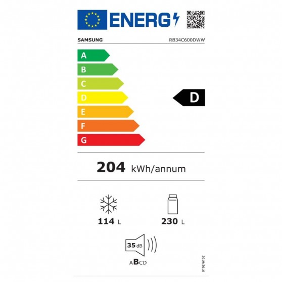 Samsung RB34C600DWW, 344 L, SN-ST, 8 kg/24h, D, Compartimiento de zona fresca, Blanco