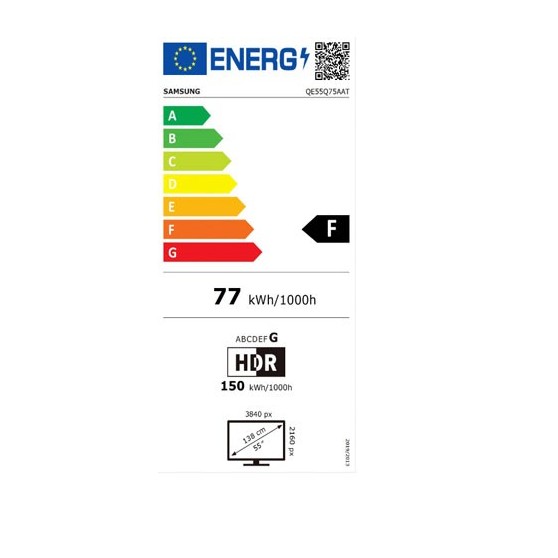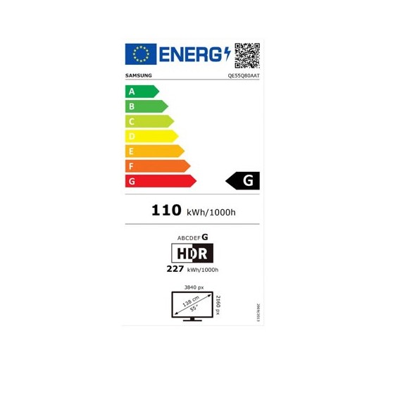 Televisor QLED de 55"que ofrece el máximo detalle con su increíble pantalla UHD. Tiene una eficiencia energética G proporcionando un consumo mínimo en tu hogar.