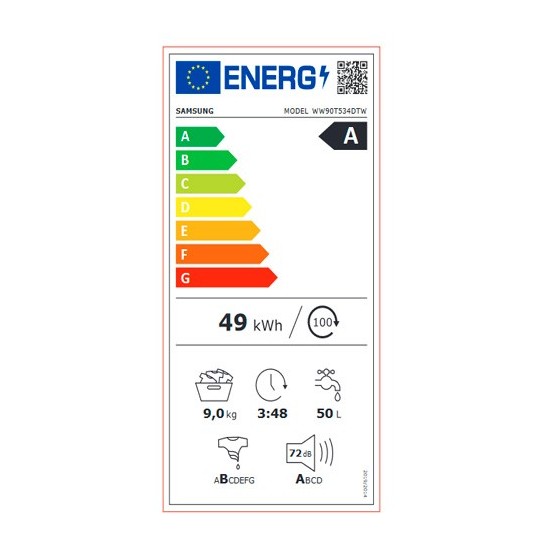Lavadora Libre Instalación en color Blanco, eficiencia energética A, capacidad de carga de 9 kg y máxima velocidad de centrifugado de 1400 rpm