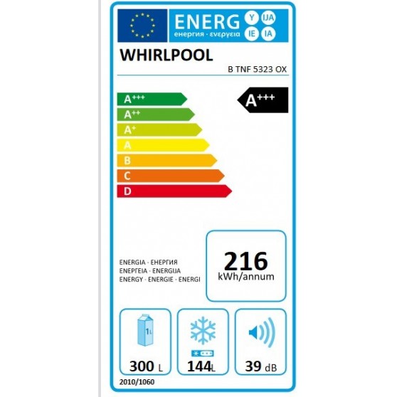 Combi Libre Instalación Whirlpool W7 821O K, 338 L, SN-T, 10 kg/24h, A++, Compartimiento de zona fresca, color negro