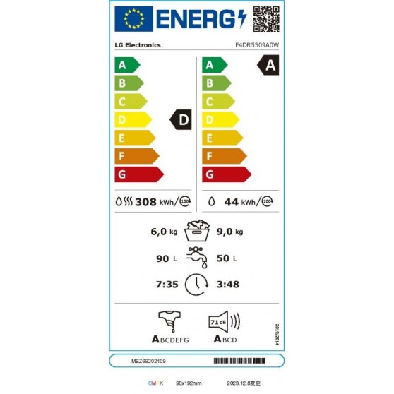 Lavasecadora Libre Instalación con eficiencia energética D; capacidad de lavado de 10 Kg, capacidad de secado de 6 Kg y máxima velocidad de centrifugado de 1400rpm.