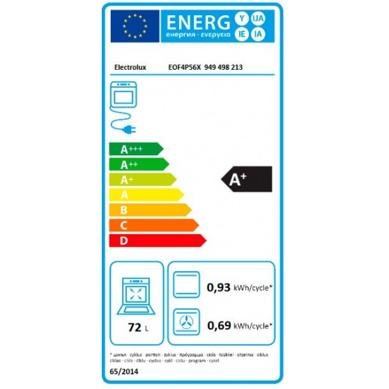 Horno Multifunción en color inox y puerta abatible. Horno con una altura de 60 cm, sistema de limpieza pirolítico y eficiencia energética A+.