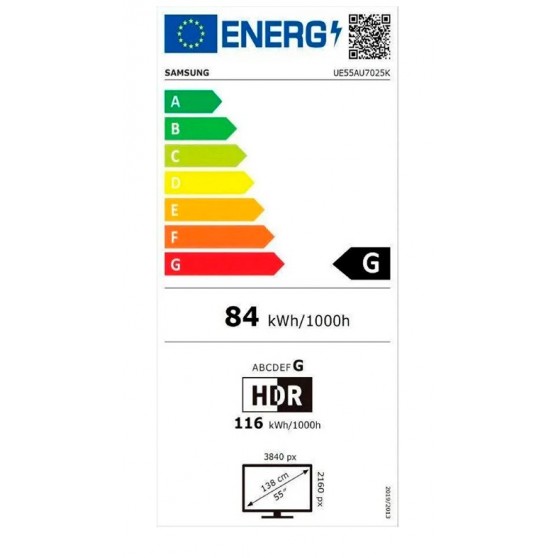 Televisor LED de 55 pulgadas, eficiencia energética G,Smart TV y Wifi integrado.