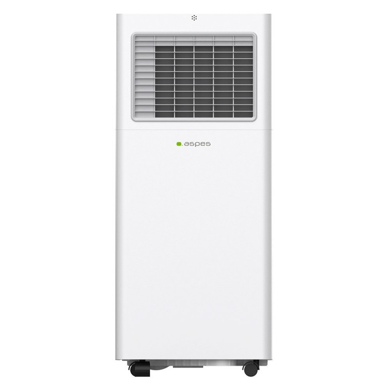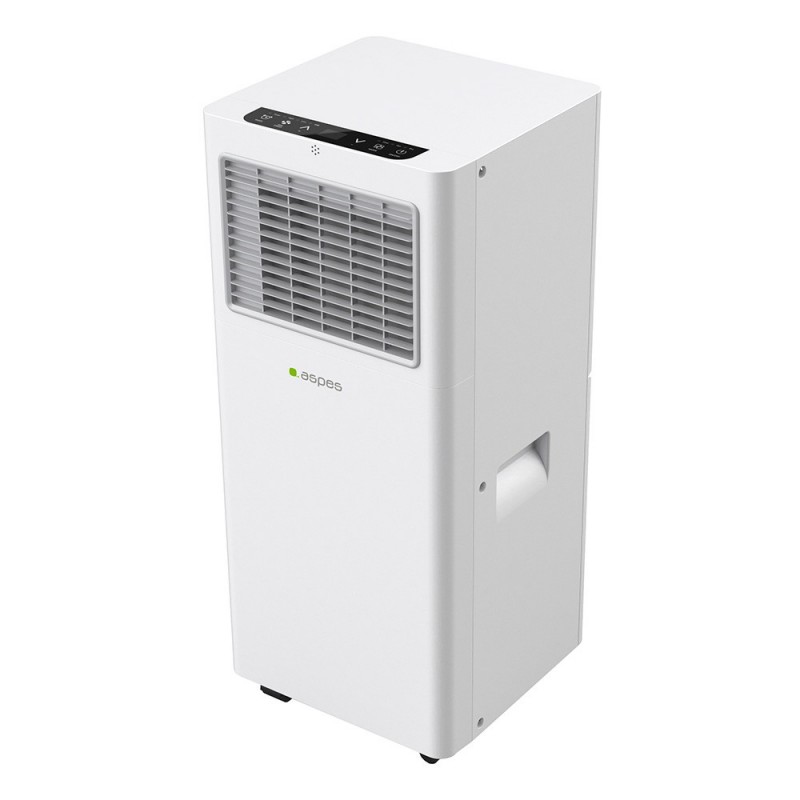 Este aire acondicionado portátil destaca por su elegante diseño en color blanco que se adapta fácilmente a cualquier estilo de decoración. Equipado con un práctico panel de control táctil con display LED y mando a distancia, permite un manejo intuitivo y cómodo desde cualquier punto de la habitación. Sus ruedas integradas facilitan su traslado entre estancias, ofreciendo una solución versátil y funcional para el hogar.