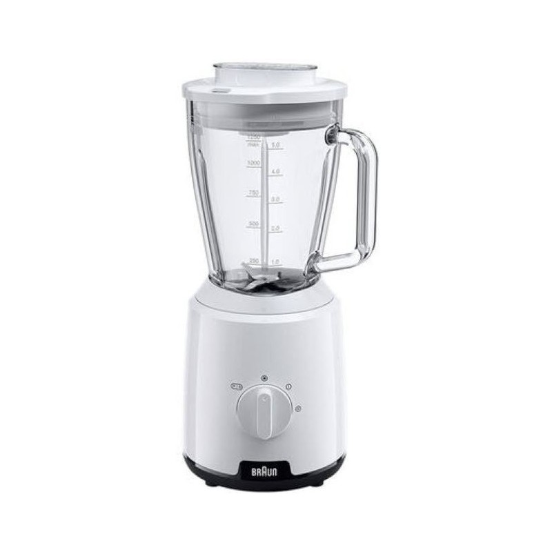 La batidora de vaso BRAUN JB1050WH ofrece una potencia de 600W que garantiza un triturado uniforme incluso con ingredientes duros. Con sus cuchillas de acero inoxidable, consigue texturas suaves y homogéneas en batidos, cremas y salsas. Su motor está diseñado para un rendimiento constante, lo que la convierte en una herramienta confiable para la cocina diaria.