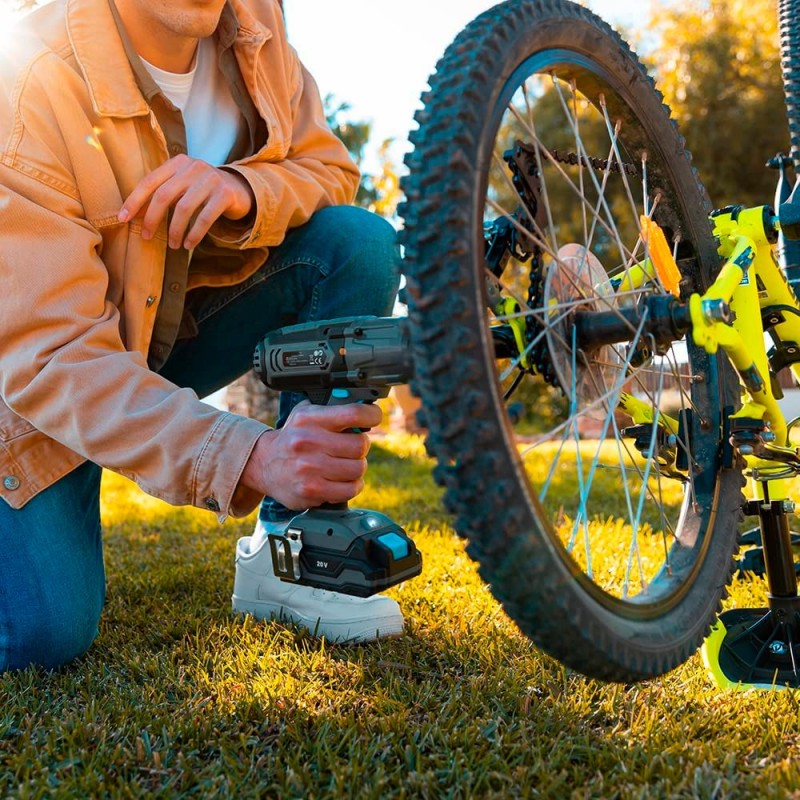 Esta llave de impacto ofrece una completa libertad de movimientos y del espacio de trabajo. Evita los compresores voluminosos o los cables de las herramientas convencionales y disfruta de los trabajos de bricolaje, reparación o construcción sin ninguna limitación.