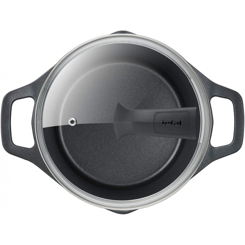 Fabricada en elegante aluminio fundido y de base gruesa, esta olla garantiza una excelente retención del calor, para obtener unos resultados tiernos y sabrosos en todas tus recetas favoritas. Su revestimiento antiadherente de titanio es duradero y sólido, a la vez que sus características ingeniosas, tales como la tecnología Thermo-Spot®, el pico vertedor, el mango ergonómico y la tapa erguida (solo en ollas, cacerolas y guiseras), te permiten cocinar de forma dinámica. Compatible con todo tipo de cocinas, incluidas las de inducción.
