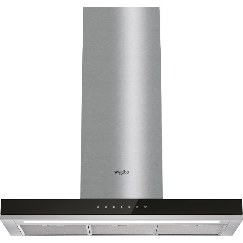 Whirlpool WHSS 92F LT K. Máxima capacidad de extracción: 770 m³/h, Tipo de extracción: Canalizado/Recirculación, Clasificación eficiencia dinámica de fluidos: A. Tipo: De pared, Color del producto: Negro, Potencia de bombilla: 7 W. Tipo de filtro de grasa: Aluminio. Clase de eficiencia de energía: A+, Potencia del motor: 270 W, Consumo de energía anual: 44,3 kWh. Ancho: 898 mm, Altura: 1295 mm, Profundidad: 320 mm