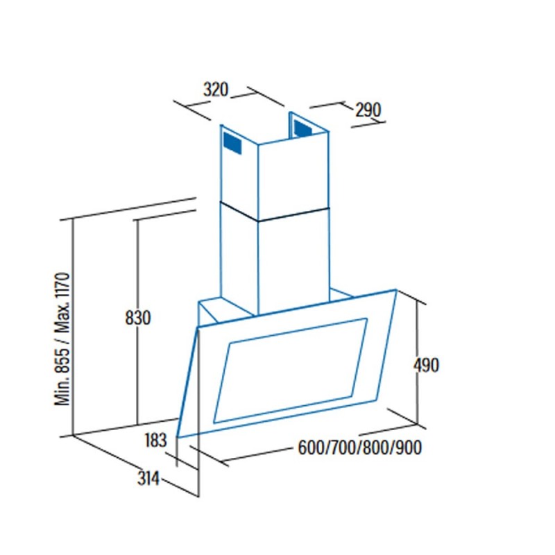 Campana Decorativa de 90 cm de ancho y en color negro. Ofrece un sistema de ventilación de un nivel sonoro máximo de 64 dB y una capacidad de extracción máxima de 842 m³/h.