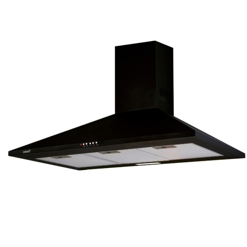 Campana Decorativa de 90 cm de ancho y color negro. Ofrece un sistema de ventilación de un nivel sonoro máximo de 72 dB y una capacidad de extraccin máxima de 645 m³/h.