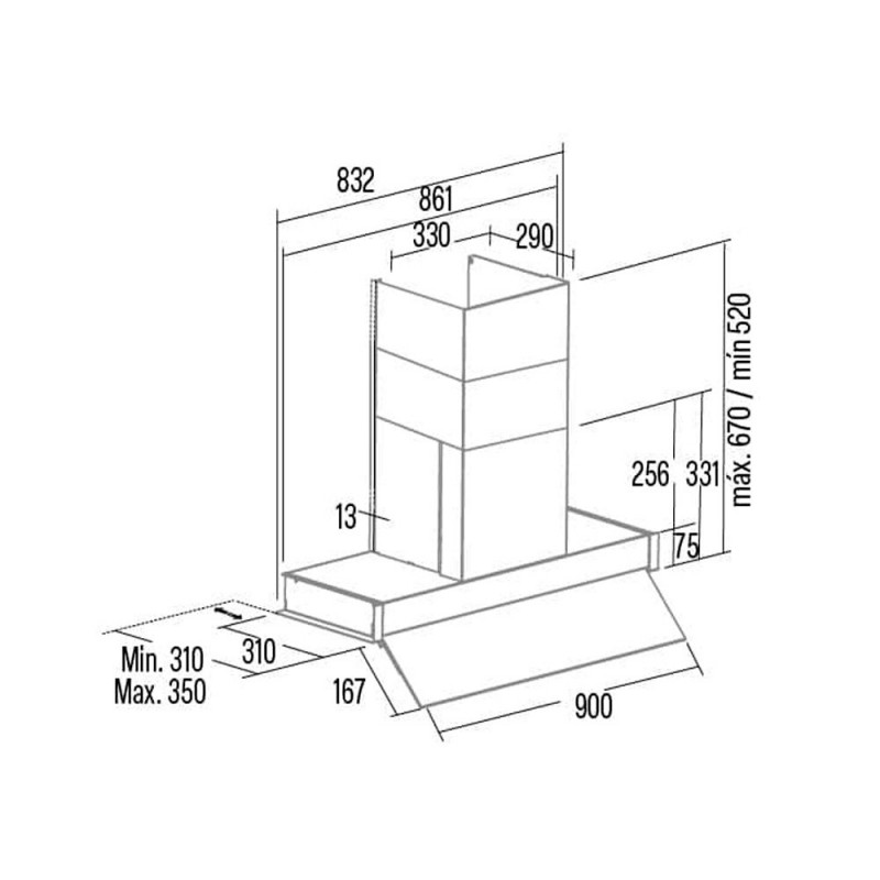 Distancia mínima a una placa de cocción eléctrica (mm):550