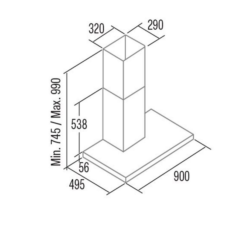 Este modelo cuenta con un diseño moderno y sofisticado en color negro, que añade un toque de elegancia a tu cocina. Su anchura de 90 cm se adapta perfectamente sobre tu horno o cocina de 70 cm y 80 cm, manteniendo un cómodo espacio para la cocción y asegurándote que todos los vapores de las cocciones salgan.