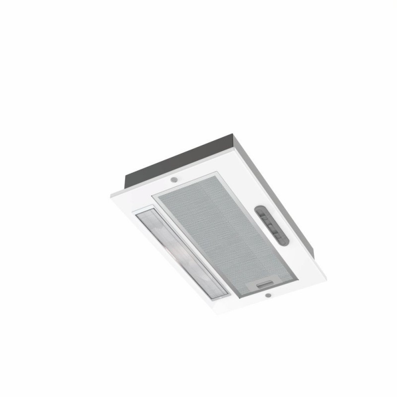 El diseño extraplanar y telescópico de esta campana facilita su integración en muebles de cocina, manteniendo una estética limpia y moderna. Su acabado en blanco combina con todo tipo de estilos decorativos, desde los más clásicos hasta los más contemporáneos. Además, su ubicación de escape superior y el diámetro de conexión de 12 cm permiten una instalación sencilla y versátil.