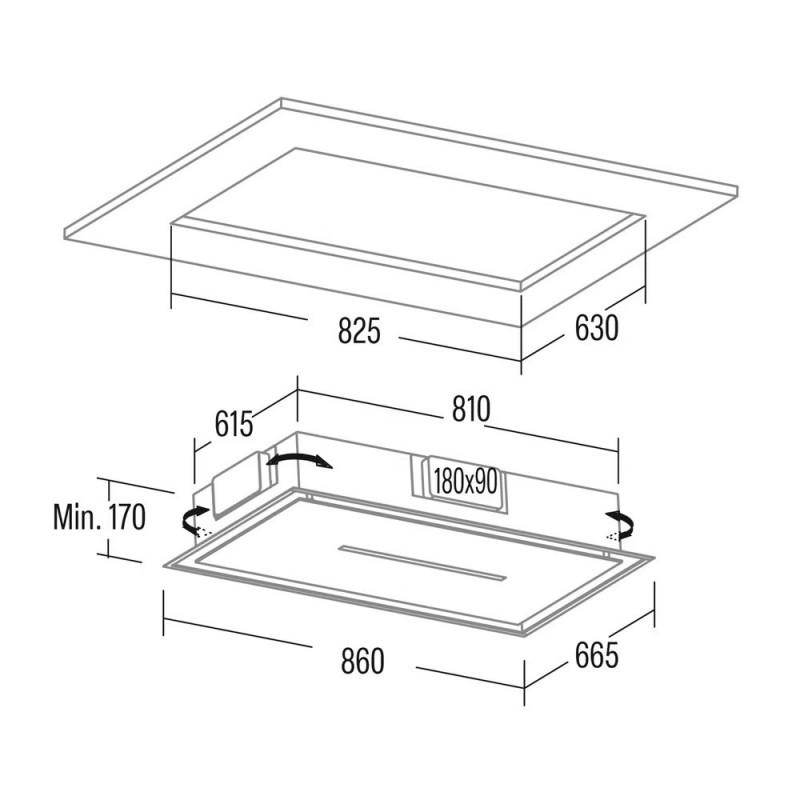 Altura mínima de encastre de 170mm