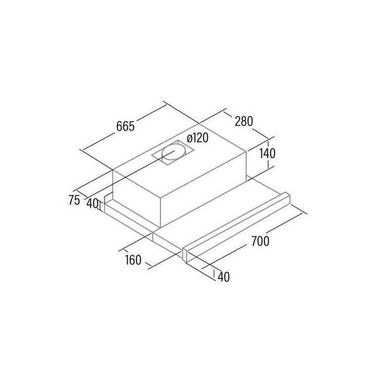 Panel de Control Mecánico 2 niveles de extracción Capacidad de extracción máxima – mínima (Reg.(UE) nº65/2014): 390m3/h - 150m3/h Nivel sonoro (Reg.(UE) nº65/2014): 45dB(A), máximo: 57dB(A) Motor tangencial. Extra silencioso. Consumo máximo de energía 100W Iluminación de alta eficiencia mediante LEDs Sistema de fácil instalación Cuerpo inox y filtros panelados en inox lavables en lavavajillas Acabado en inox Presión max. 194 Pa Descarga 120 mm Clase de eficiencia energética:C