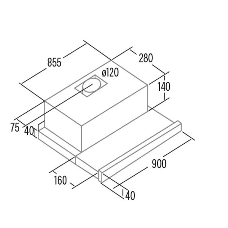 Panel de Control Mecánico 2 niveles de extracción Capacidad de extracción máxima – mínima (Reg.(UE) nº65/2014): 390m3/h - 150m3/h Nivel sonoro (Reg.(UE) nº65/2014): 45dB(A), máximo: 57dB(A) Motor tangencial. Extra silencioso. Consumo máximo de energía 100W Iluminación de alta eficiencia mediante LEDs Sistema de fácil instalación Cuerpo inox y filtros panelados en inox lavables en lavavajillas Acabado en inox Presión max. 194 Pa Descarga 120 mm Clase de eficiencia energética:C