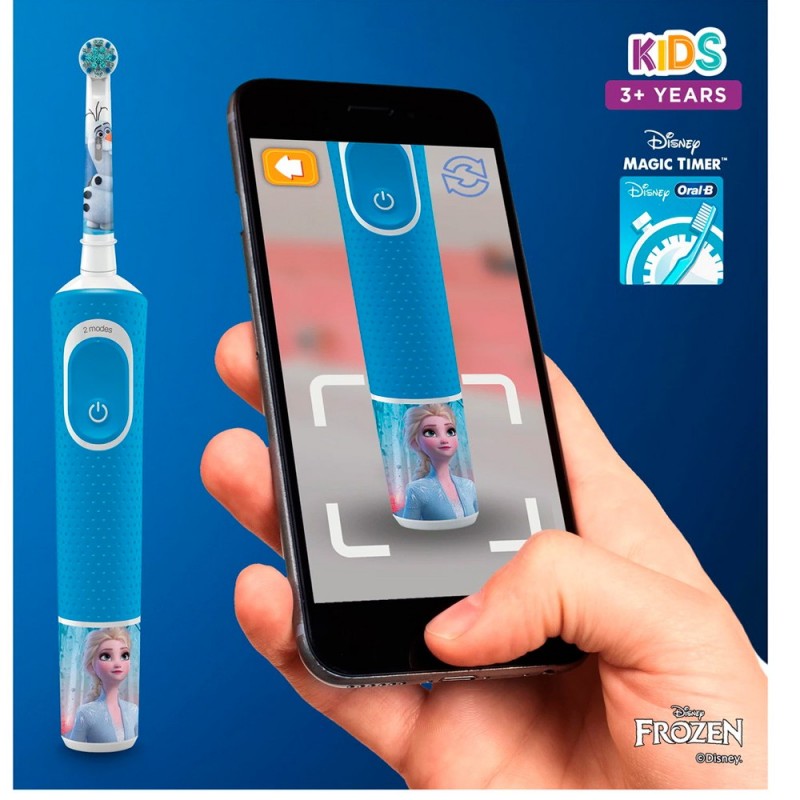 Limpieza suave y eficaz El cepillo eléctrico de Oral-B Kids para niños mayores de 3 años combina la diversión de Frozen con la limpieza suave y eficaz de un cepillo de dientes Oral-B recomendado por dentistas.