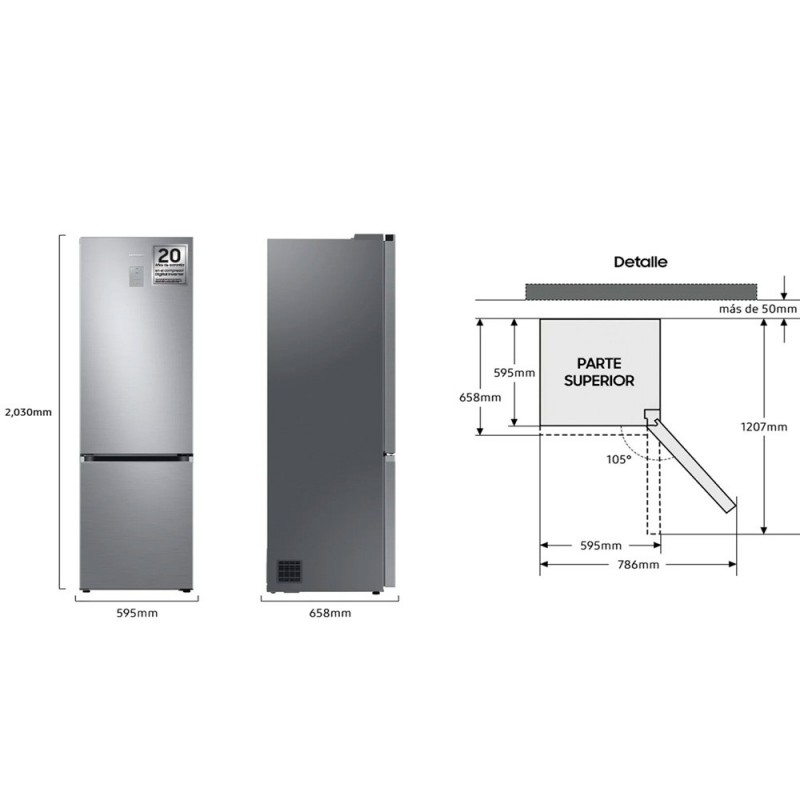 Más espacio interior manteniendo el mismo tamaño exterior. Samsung ha reducido el grosor de las paredes maximizando la capacidad interior alcanzando hasta 390 litros de capacidad neta.