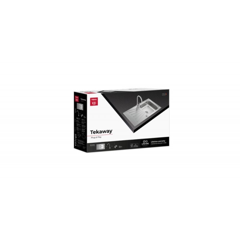 Fregadero empotrado de acero inoxidable con diseño rectangular, el Kit Tekaway StarBright 45 E-XP 1C 1E + UNI 9310 es una solución integral para tu cocina. Su estética moderna se combina con una funcionalidad pensada para el día a día, incluyendo escurridor reversible, grifo, sifón y accesorios que facilitan su instalación.