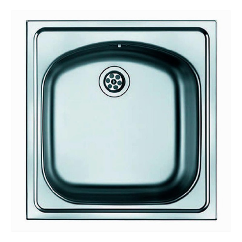 Fregadero Sobre Encimera de una cubeta para mueble de 45 cm. Desagüe con válvula con canasta 2" y rebosadero.