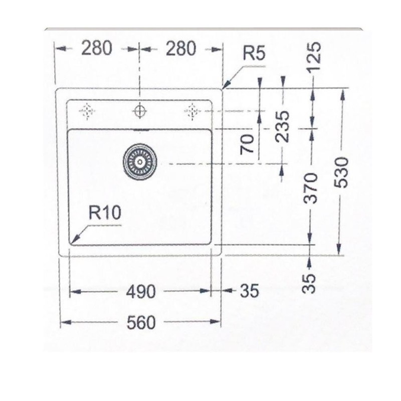 Dimensiones y Accesorios: Anchura exacta:56 Centímetros Profundidad:53 Centímetros Anchura de Encastre:54 Cm Profundidad de Encastre:51 Cm Medidas de la Cubeta Principal:49x37x20 / R10 mm Accesorios Incluidos:Válvula 3 1/2" y rebosadero