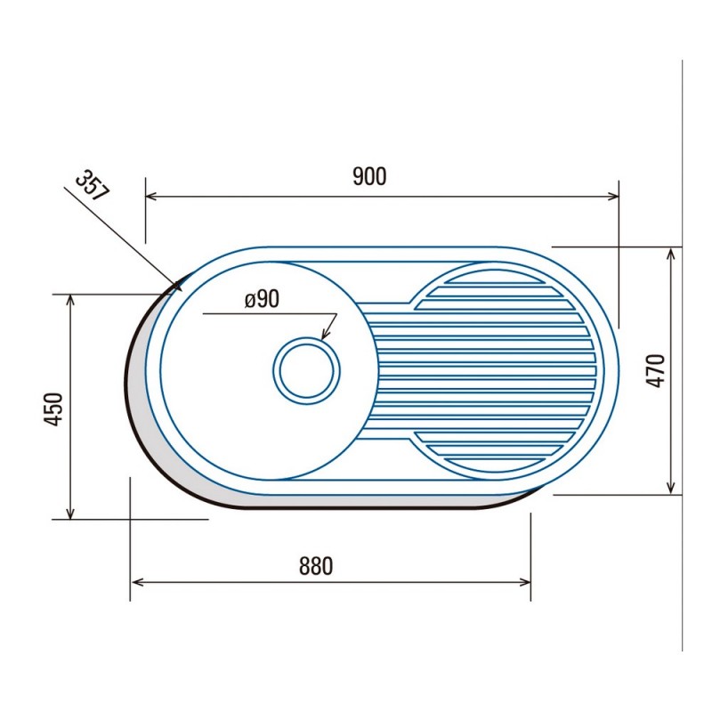 Fregadero Sobre Encimera de acero inoxidable para mueble de 45 cm de una cubeta y escurridor, izquierda. Desagüe con válvula con canasta 3½"" y sifón.