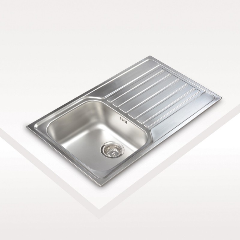 Fregadero Sobre Encimera de acero inoxidable para mueble de 45 cm de una cubeta y escurridor, derecha. Desagüe con válvula con canasta 3½"" y sifón.