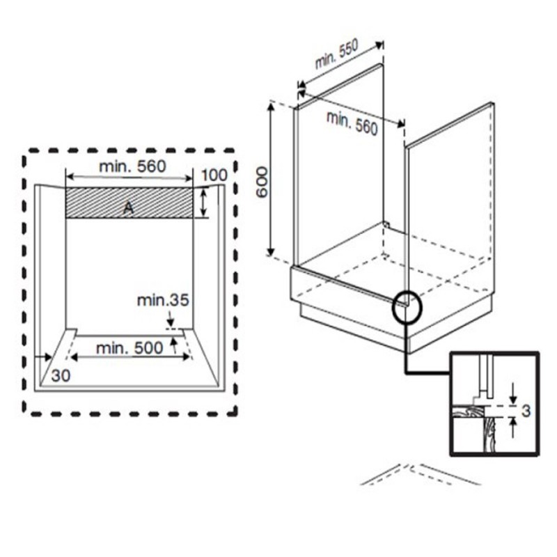 Dimensiones nicho bajo encimera: 56 x 55 x 60