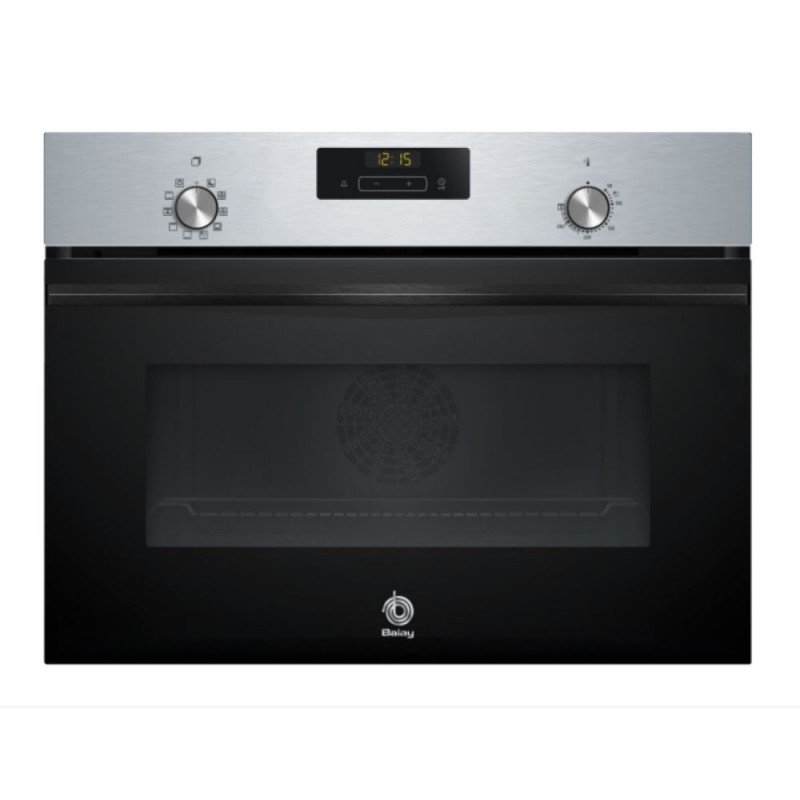 Su diseño compacto y moderno encaja en cualquier cocina con facilidad. La pantalla incorporada permite monitorear el proceso de cocción, mientras que el reloj electrónico facilita la programación de inicio y fin, para que puedas cocinar sin preocuparte por el tiempo. La iluminación halógena interior asegura una visibilidad perfecta en el horno, permitiendo verificar el estado de los alimentos en cualquier momento sin necesidad de abrir la puerta.