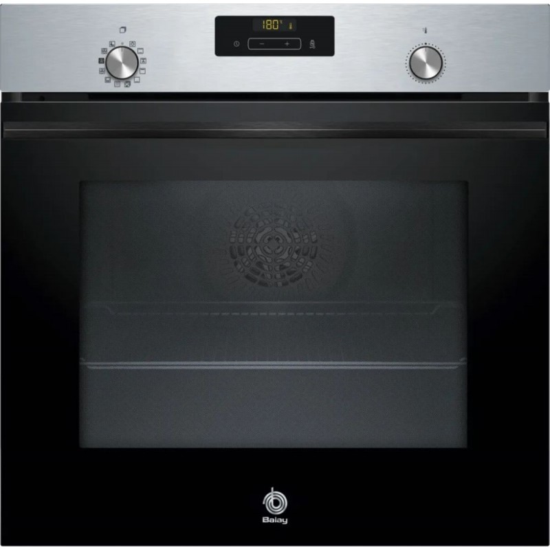 El horno Balay combina un elegante diseño en negro y acero inoxidable con materiales de alta calidad como vidrio y metal. Su estética se integra perfectamente en cualquier cocina, ofreciendo un toque sofisticado y moderno.