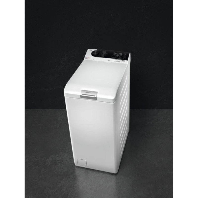 Lavadora de carga superior Serie 7000 ProSteam® de 7 kg a 1.200 rpm, motor Inverter, Display LCD XL, Certificado WoolMark Green, cajon LiquiSystem (detergente liquido y en polvo), programas de vapor ProSteam, apertura suave del tambor y de la tapa y tecnología ProSense que ahorra tiempo, agua y energía.