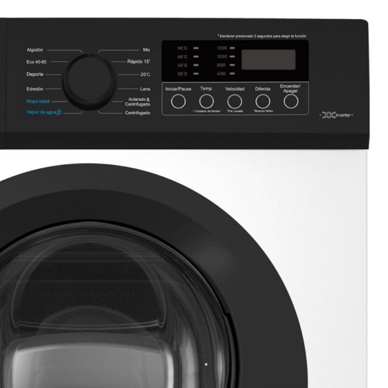 Equipada con 12 programas de lavado, esta lavadora se adapta a todo tipo de prendas: desde ropa delicada hasta tejidos deportivos. La función de vapor incorporada permite eliminar olores y minimizar las arrugas, facilitando el planchado y mejorando el cuidado de la ropa. Además, el sistema de control electrónico con pantalla LED facilita la selección de ciclos y funciones.