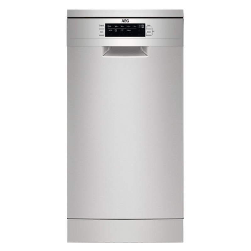 Cesto inferior con 2 soportes plegables para platos, Asa de plástico a color: Borde de la estructura más alto con dos bandejas plegables para platos , Tirador AEG