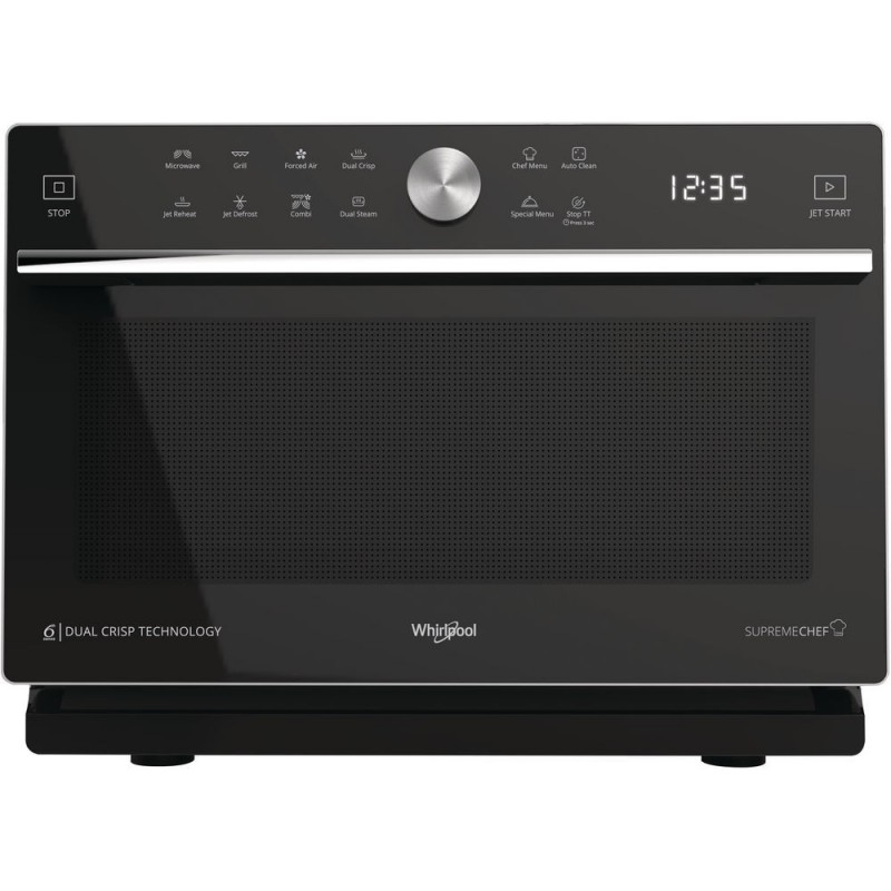 El tamaño del plato giratorio es de 36 cm. Cuenta con luz interior, reloj integrado y parrilla. El material del tocadiscos es de vidrio. La longitud del cable es de un metro para facilitar su colocación. Realiza cocción de convección, cocción a vapor, mantiene calientes los alimentos y posee la función descongelar.