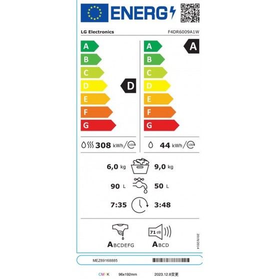 Lavadora-secadora de carga frontal con capacidad de lavado de 9 kg y secado de 6 kg. Su motor AI DD™ ajusta los movimientos según el tipo de tejido, cuidando mejor tu ropa. Incluye programas como vapor, rápido 14 min y contra alergias. Con eficiencia energética A en lavado, pantalla LED, control táctil y giratorio, y funciones como inicio diferido,...