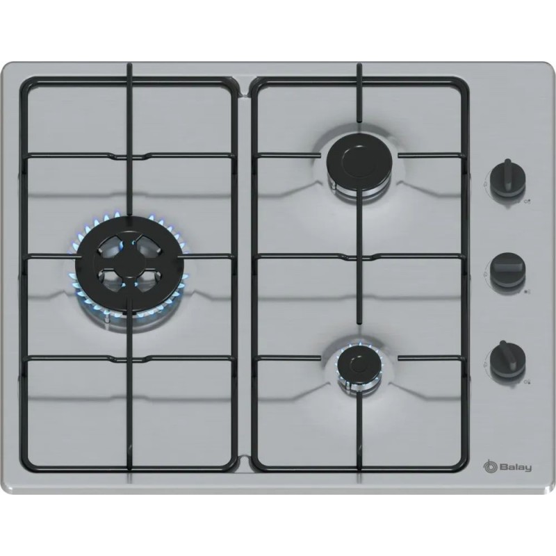 Placa de gas encimera Balay con diseño en acero inoxidable, pensada para quienes valoran la cocina tradicional sin renunciar a la tecnología actual. Su estética elegante se adapta a cualquier estilo de cocina, mientras que sus prestaciones modernas garantizan una experiencia segura y cómoda.