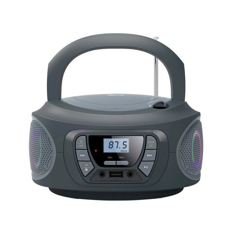 El reproductor de CD portátil Fonestar BOOM-ONE-G destaca por su diseño en color gris que combina elegancia y practicidad. Con un peso de solo 850 gramos y dimensiones reducidas, resulta muy sencillo de transportar para disfrutar de la música en cualquier lugar. Su estilo moderno lo convierte en un equipo versátil que encaja perfectamente en diferentes entornos, ya sea en casa, en la oficina o al aire libre.