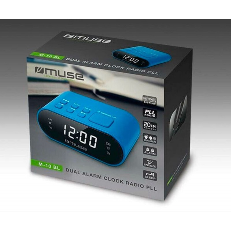 El radio despertador MUSE M-10 en color azul cuenta con un diseño compacto que se adapta perfectamente a cualquier espacio reducido, como una mesita de noche o una estantería. Su pantalla LED de 0.6 pulgadas ofrece una visualización clara de la hora en formato de 24 horas, lo que garantiza una lectura precisa durante todo el día. Además, la intensidad de la pantalla puede ajustarse entre fuerte, baja o incluso apagarse, para adaptarse a tus preferencias y brindar mayor comodidad al dormir.