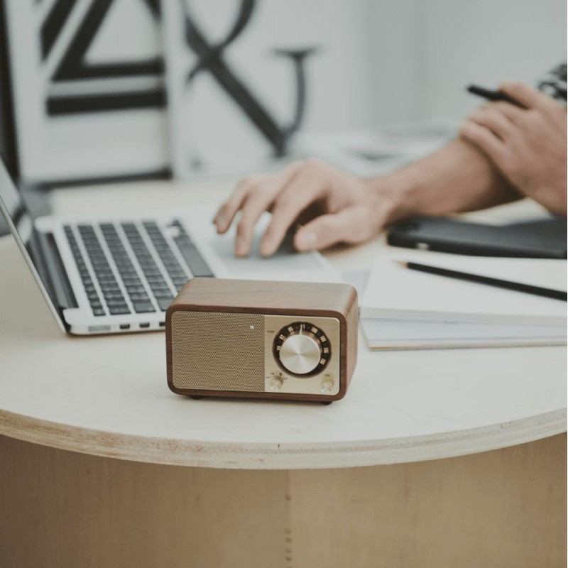 La radio portátil en color cerezo destaca por su diseño clásico fabricado en madera acústica, aportando un estilo cálido y sofisticado que combina perfectamente con cualquier ambiente. Su aspecto compacto permite colocarla fácilmente en estanterías, mesas o escritorios, añadiendo un detalle decorativo al mismo tiempo que ofrece un sonido de gran calidad.