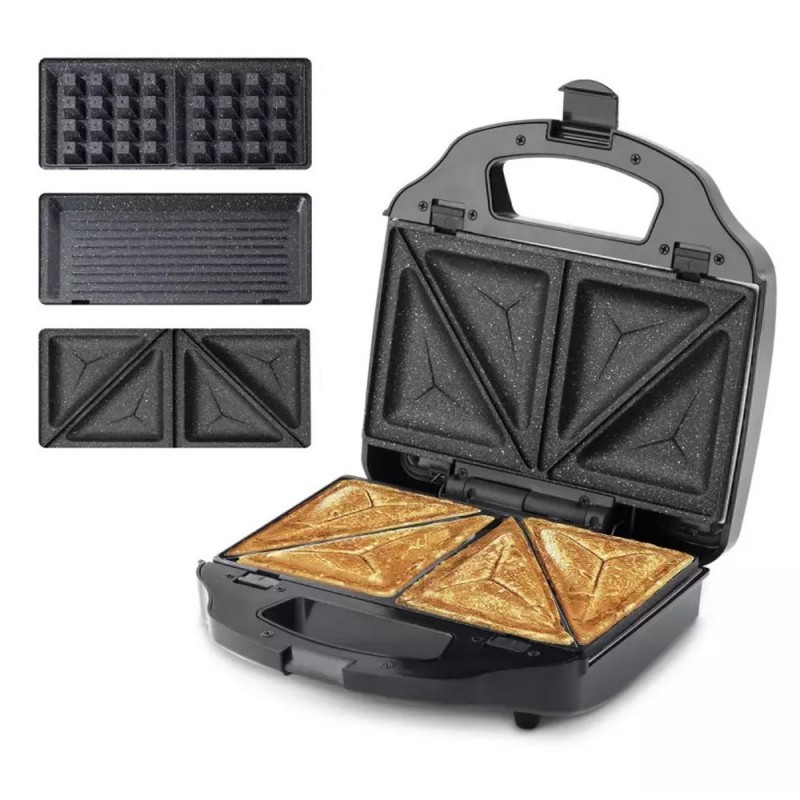 La sandwichera 3 en 1 permite preparar desde sándwiches dorados hasta gofres esponjosos o deliciosas carnes a la parrilla. Su diseño está pensado para quienes buscan practicidad sin renunciar a la variedad en sus comidas. Gracias a sus placas intercambiables, cada receta se adapta de forma sencilla y rápida, logrando resultados sorprendentes en poco tiempo.