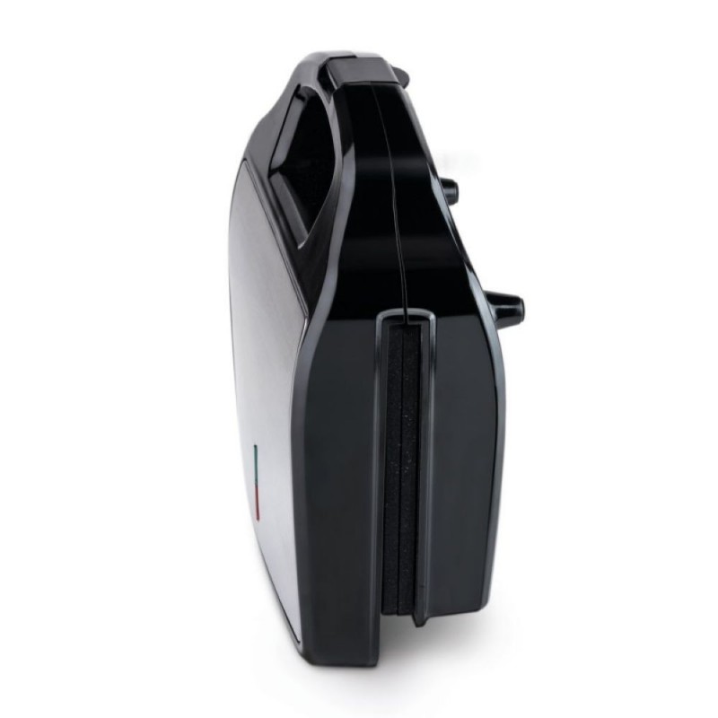 Gracias a su tamaño reducido, la sandwichera 3 en 1 ocupa muy poco espacio en la cocina, lo que facilita su almacenamiento incluso en estantes pequeños. Su diseño moderno en color negro y plata no solo aporta estilo, sino que se integra fácilmente con cualquier decoración. Además, su peso ligero permite transportarla sin esfuerzo.